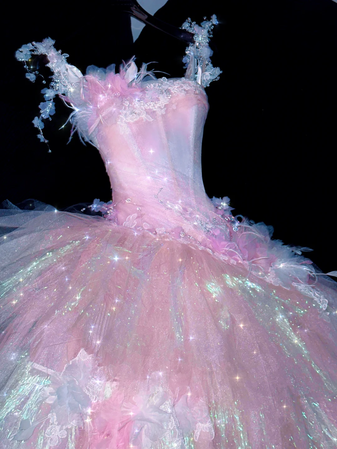 Sparkling Elegant Pink A-Line Tiered Prom Dress Evening Dress Ball Gown TP4211