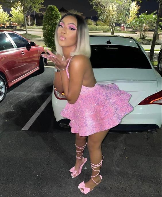 Sparkly Halter Sequin Cocktail Dresses Pink Short Prom Dresses fg3635