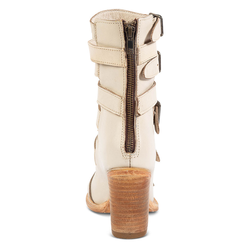 - Special Designs: Sandal boots with buckle fastening multiple strap inlay.