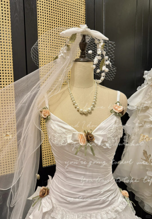 Vintage-Inspired 3D Florals Lace Ruffled Detachable Straps Wedding Dress TP5332