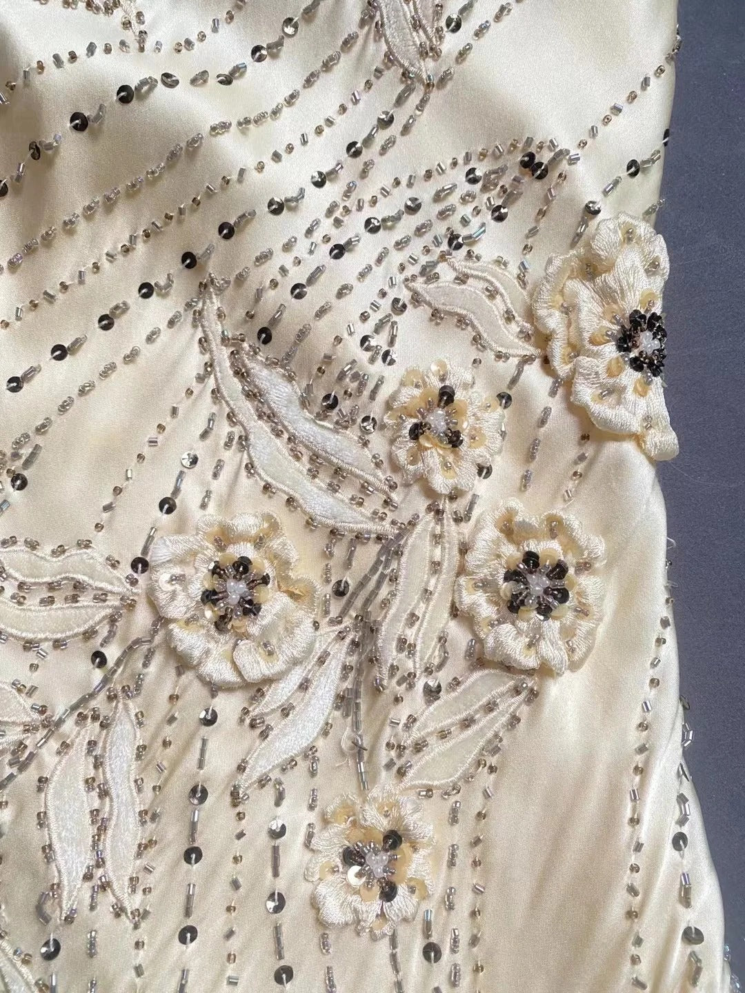 Vintage Spaghetti Strap Sheath Formal Dress Satin Beaded Birthday Dress Elegant Short Homecoming Dress ED03764