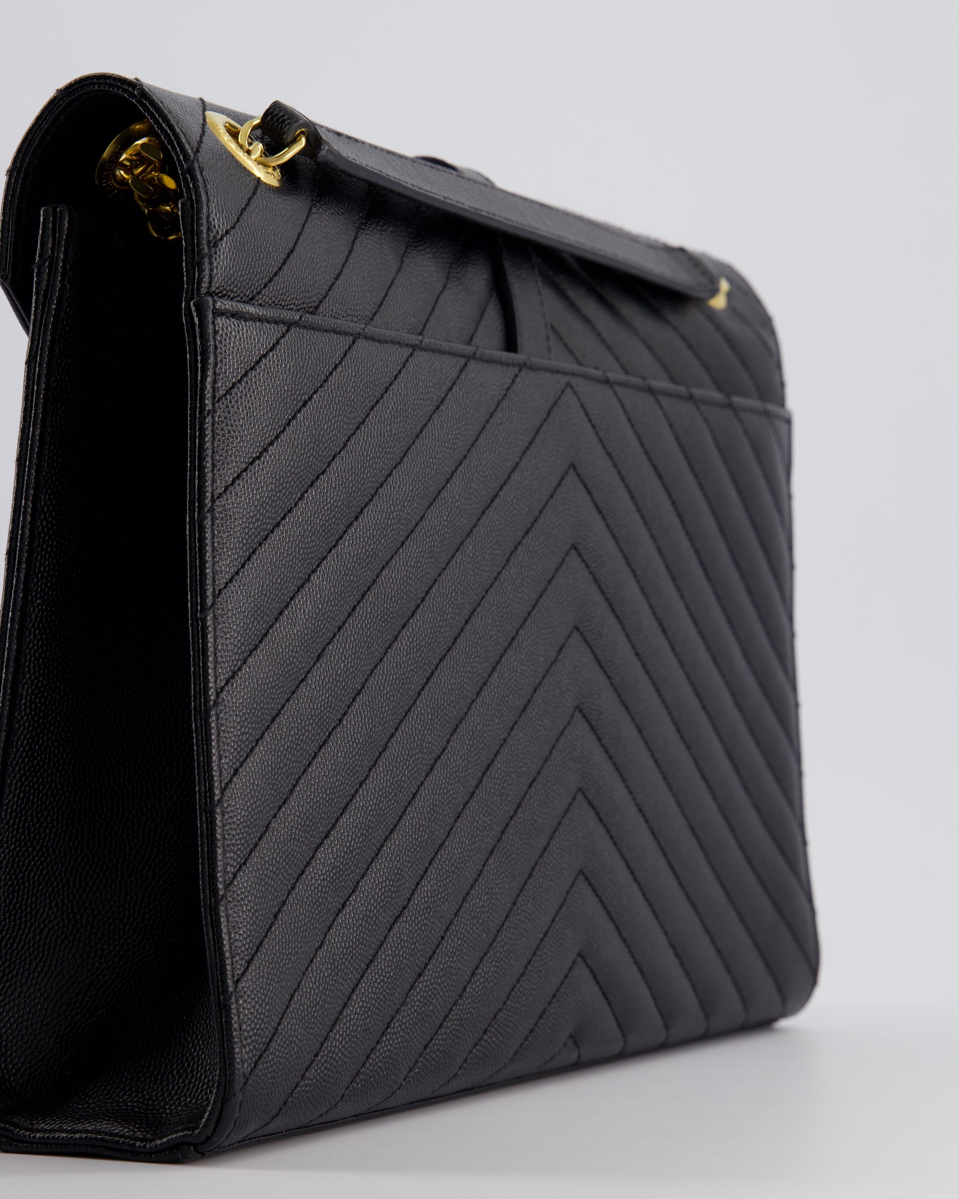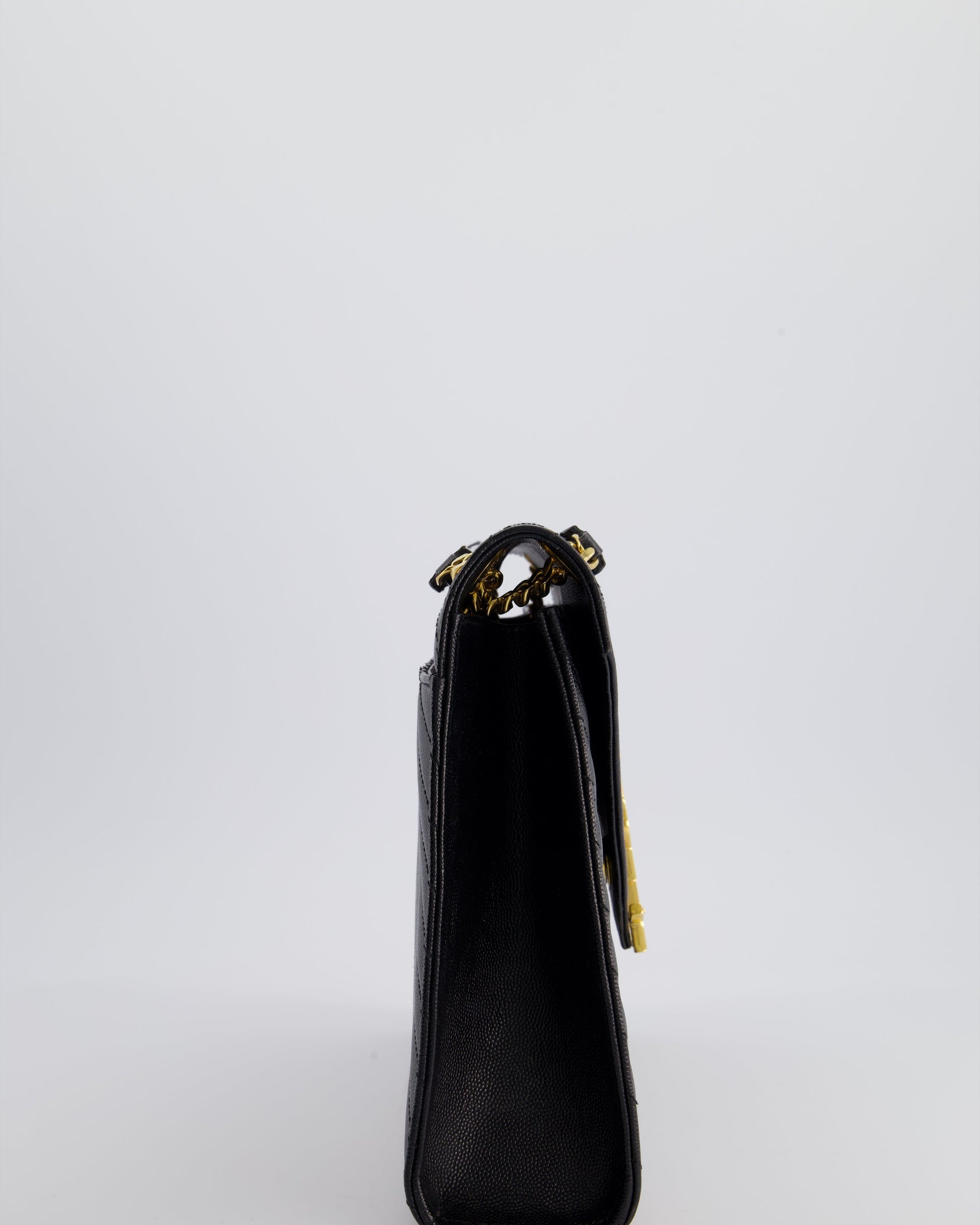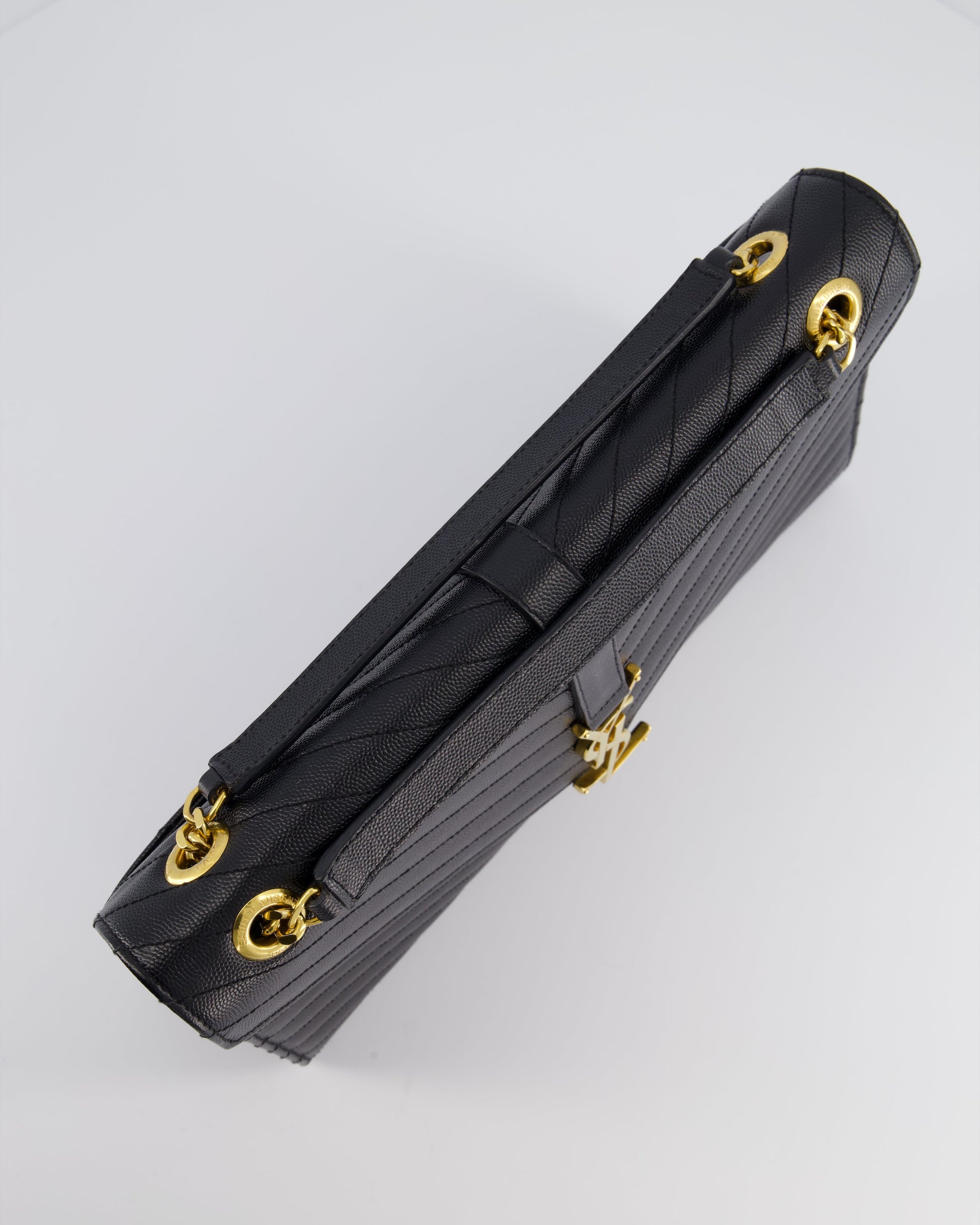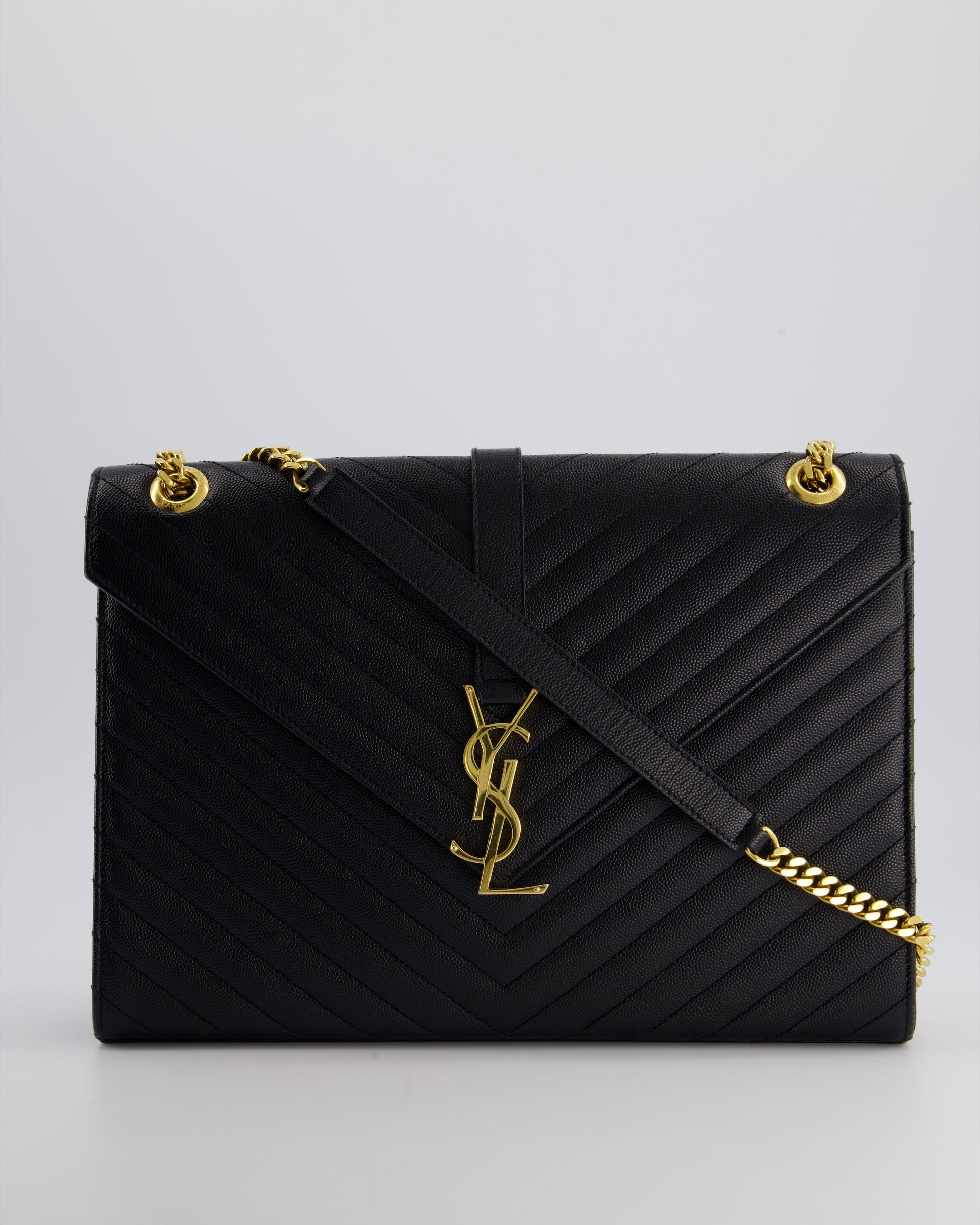 Saint Laurent Black Envelope Shoulder Bag in Grained Calfskin Leather With Gold Hardware